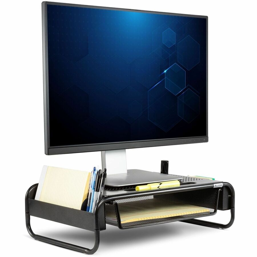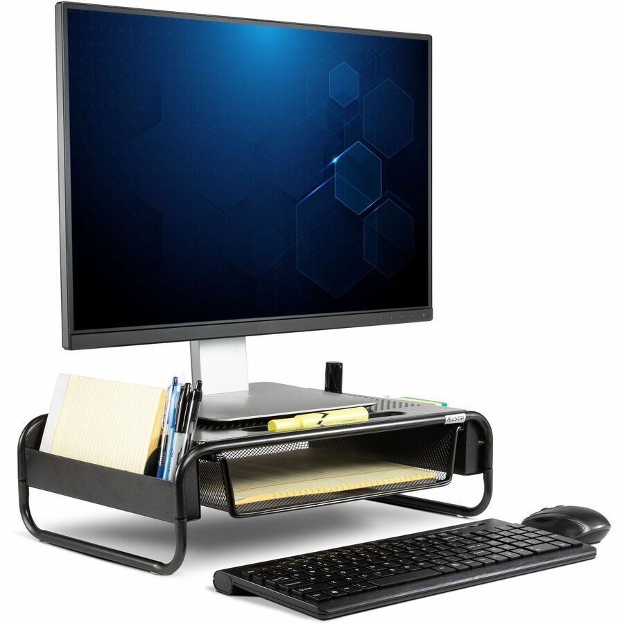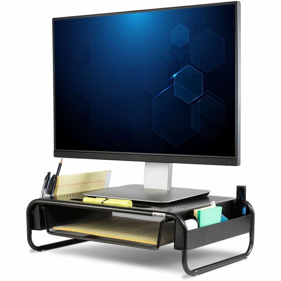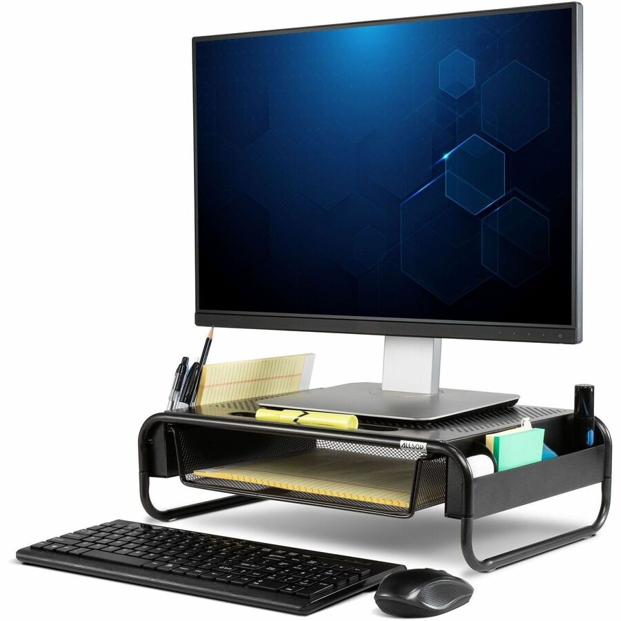 The Allsop Metal Art Organizer 5 Monitor Stand is a multi-function monitor stand that organizes your workspace while raising your monitor to a comfortable ergonomic viewing height. Featuring five organizing features, this all-steel monitor stand is the perfect way to clear clutter and free up valuable desk space. The built-in sliding drawer is ideal for storing documents, while the side cubbies provide spaces for organizing your office supplies. Store your keyboard underneath the stand to create additional desk space. Protective non-slip feet keep the stand firmly in place and prevent scuff marks. The steel construction and durable powder-coated finish ensure that this monitor stand will provide organization and ergonomic comfort for years. More from the Manufacturer |