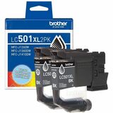 Improve your efficiency - get more ink and fewer interruptions with high yield cartridges. For everything you print, from airline tickets to homework, you can trust Brother Genuine Ink for consistent, premium performance with your Brother printer. The LC501XL2PK Twin Pack High Yield Ink includes two black ink cartridges to produce bold, sharp prints with rich black for up to 500 pages each. Bundled for savings and your convenience, it's the economical way to replace the black ink cartridges in your printer, and stay stocked for when you need it most. Main Features
