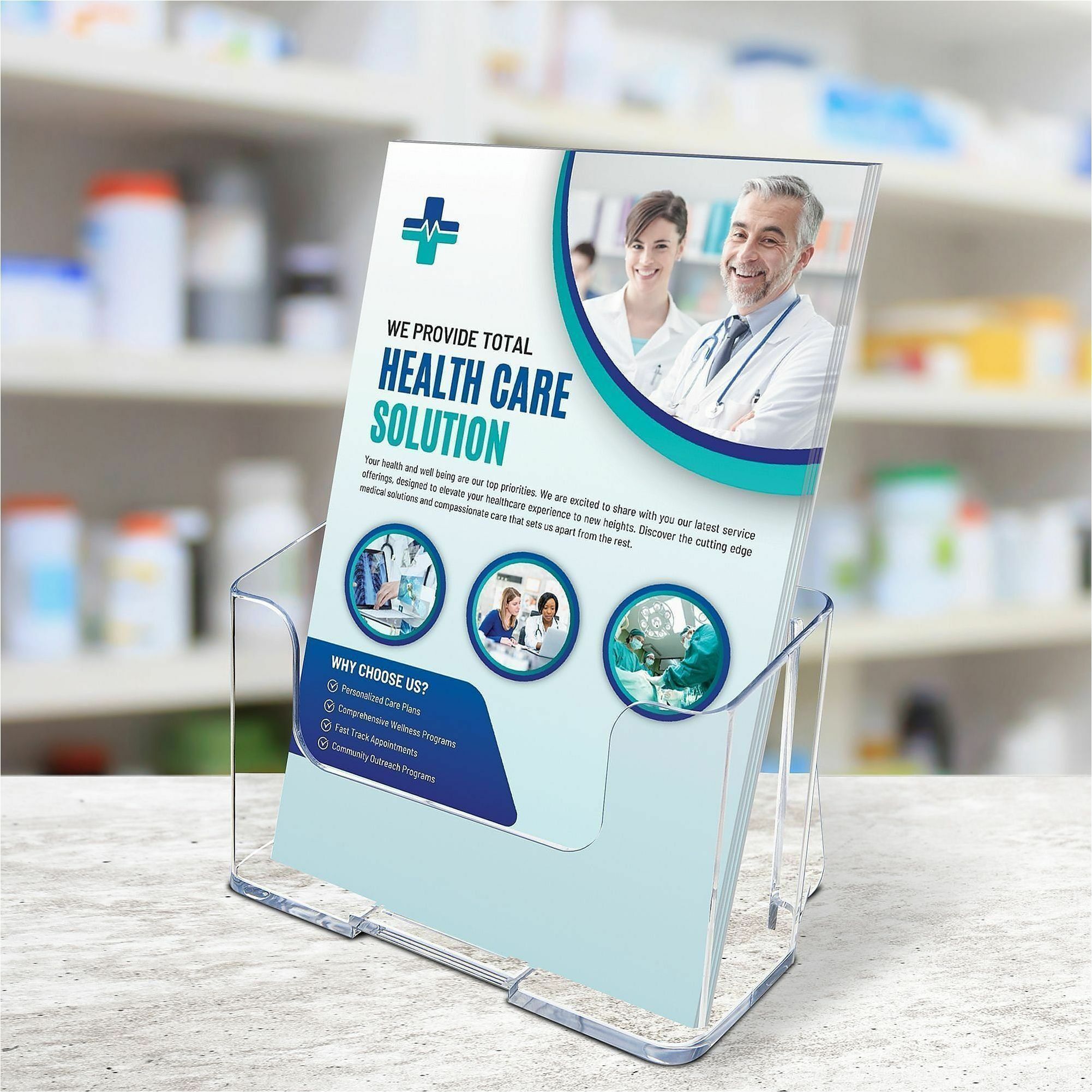 | Marketing Information | Desktop literature holder features a single-pocket design so you can focus your display on one kind of booklet and keep your literature in full view. Perfect for use in lobbies, restaurants, libraries and more. Pocket displays literature in stacks up to 1-1/2" thick. Literature holder is made of crystal-clear plastic. Rounded edges offer a smooth appearance. Use as a stand-alone display on your countertop or mount on a wall using the built-in holes. |