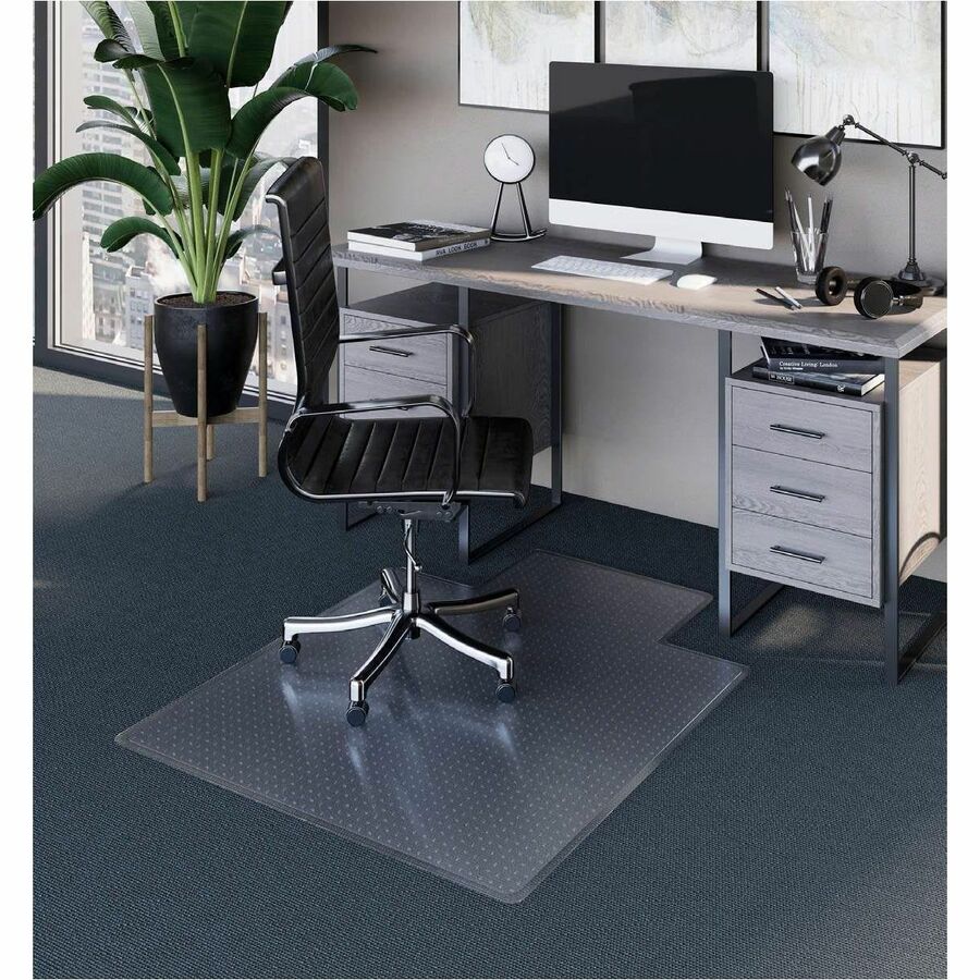 Extend the life of your floors by protecting against scuffs, scrapes, and chair caster wear. An essential addition to your workspace, provides a smooth rolling surface that enhances ergonomic confort by increating your mobility. Features Anchorbar ® carpet cleat system, holds securely yet is gentle on carpets and hands. High Pile - With Lip. 36" x 48". Greenguard Gold Certified. |