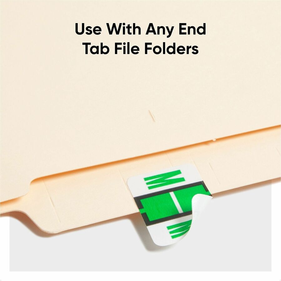 | Marketing Information | Unlike ACCS style labels, these bar-style alphabetical labels are for end-tab folders only. Color-coding labels are tab products compatible. Self-adhesive makes them easy to use. Label measures 1-1/4" wide x 1" high (before folding). |