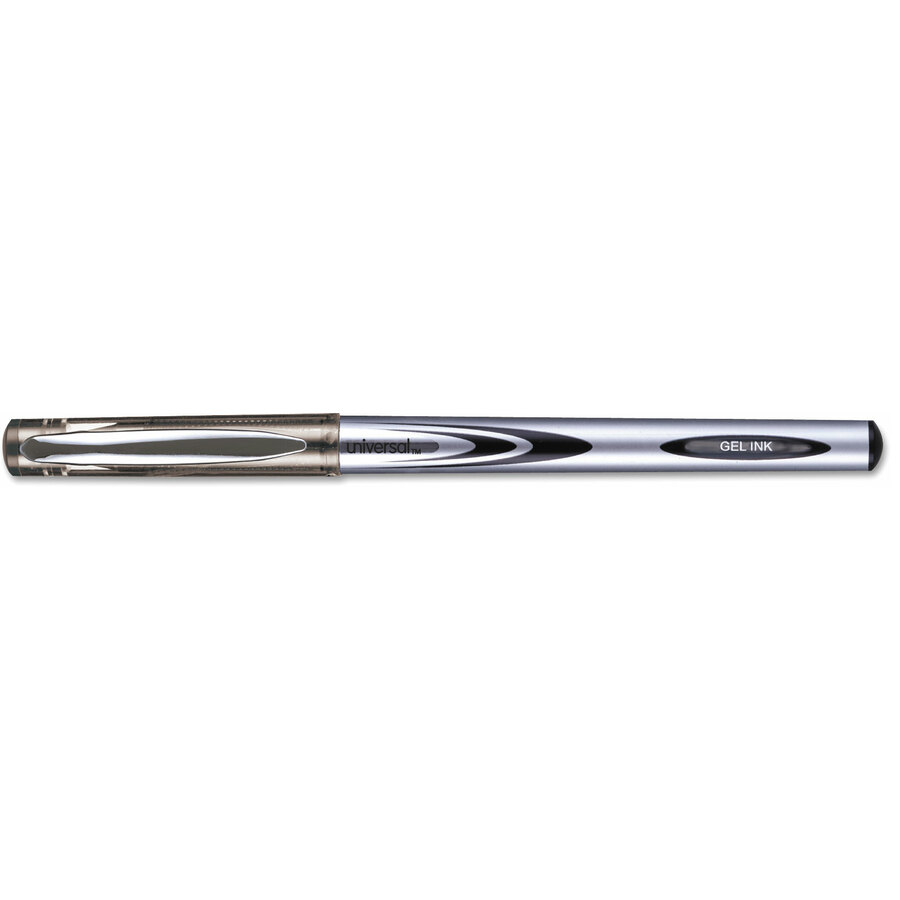 Universal Gel Pen, Stick, Medium 0.7 mm, Black Ink, Silver/Black Barrel, Dozen